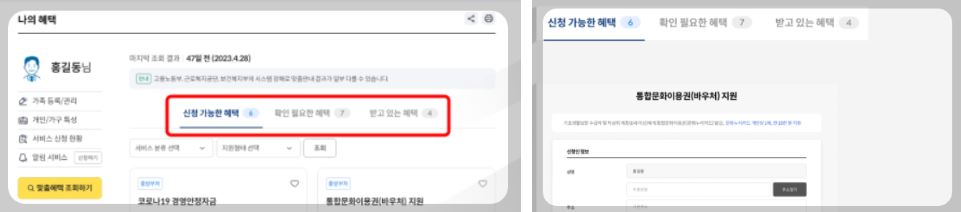 4.맞춤안내 조회가 완료되면 받을 수 이쓴 보조금 이미받고 있는 보조금 정보를 확인하고 보조금24에서 바로 신청할 수 있어요.