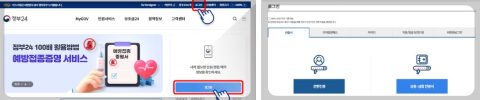 1. 정부24 회원일 경우에는 로그인을 진행하여 본인인증진행합니다. 비 회원일 경우에는 회원가입을 진행합니다.