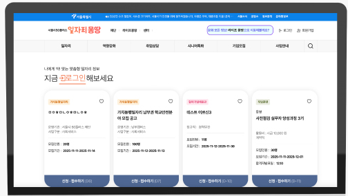서울시 일자리몽땅 플랫폼은“서울시 일자리 정보를 한 번에 보고, 바로 신청할 수 있는 공식 취업 종합 플랫폼”으로,