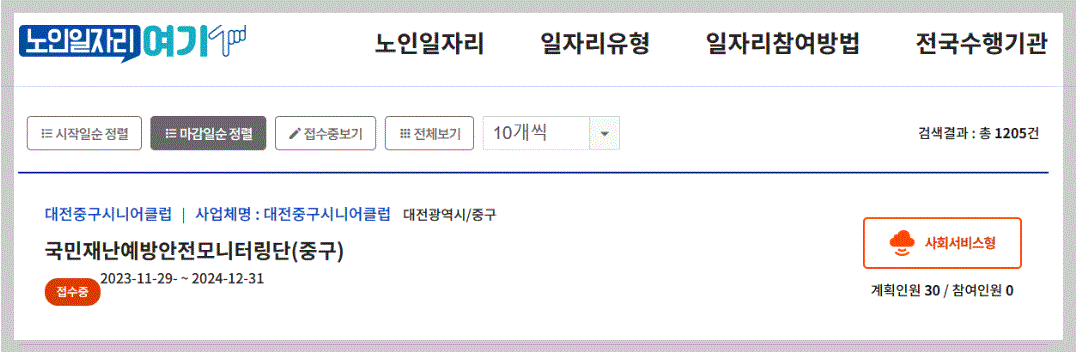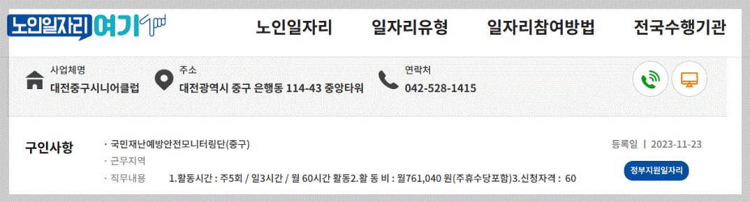 2) 검색 페이지 아래 지역구의 ‘노인일자리 모집공고’ 확인