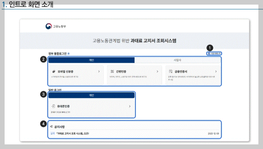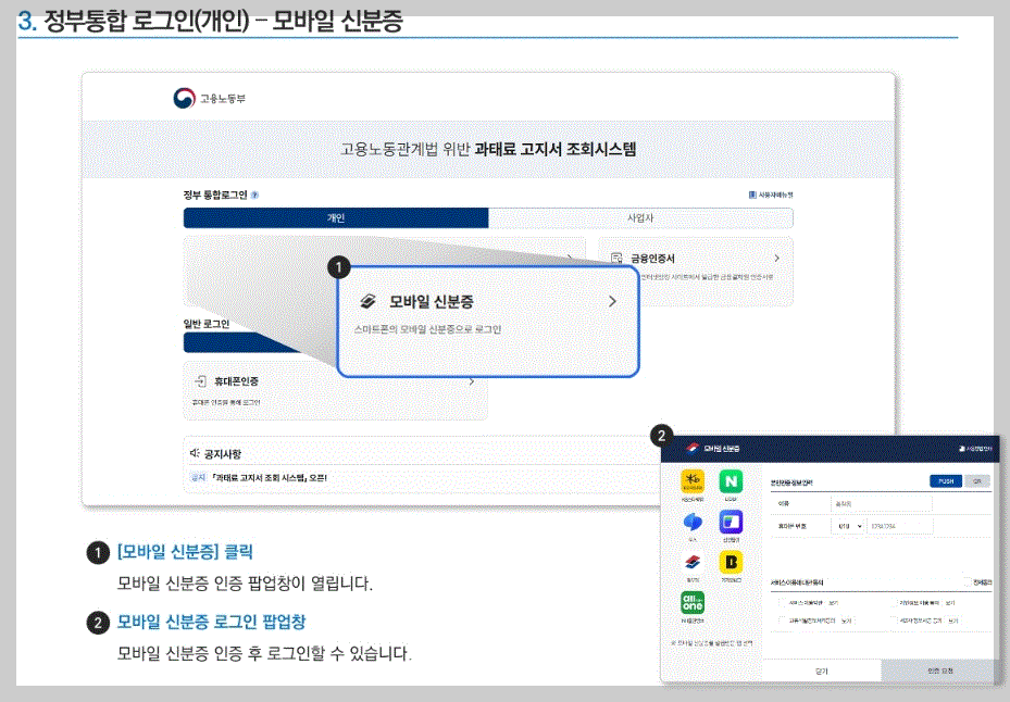 ▣ 고용노동부 모바일 전자고지