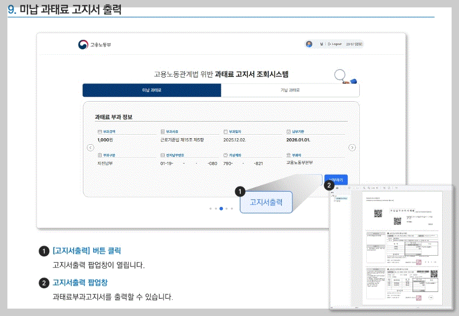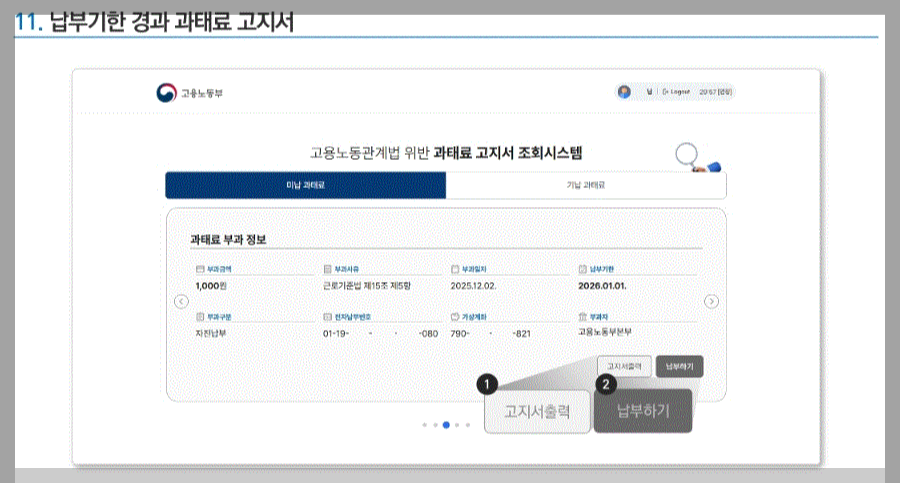 ▣ 고용노동부 과태료 조회방법