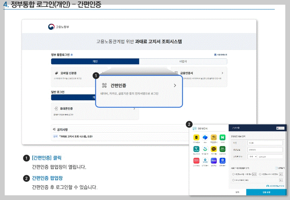 ▣ 고용노동부 과태료 조회 확인하기